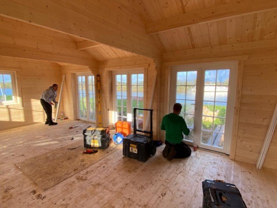 We have finished laying the vinyl laminate floor. We still have to fix the skirting which we will now do on Monday. The decking team will finish it on Monday except that we need to put an edging strip on the front of the step that runs the full width of the decking but we are a few pieces short. The painting still has to be finished. Hopefully Cally can get this all done this week in anticipation of finishing when Timber Buildings come to fix the mullions that have fallen off the doors and windows! We then need a significant clean up party. We're hoping to organise that for either Tuesday or Thursday. Nearly there!